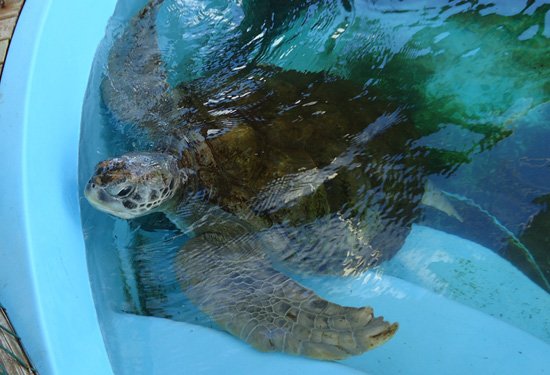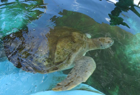 Há um auditório para realização de palestras e exibição de vídeos, dois tanques com 2 e 30 mil litros, com espécimes de tartarugas verdes (Chelonia mydas), cabeçuda (Caretta caretta) e oliva (Lepidochelys olivacea).