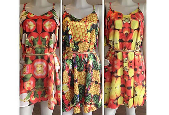 As frutas incorporam cores vibrantes, que tem tudo a ver com nosso clima. A nossa coleção vem recheada de novidades, frutas, estampas coloridas, vestidos longos, saias, blusas, tudo muito lindo para vocês!